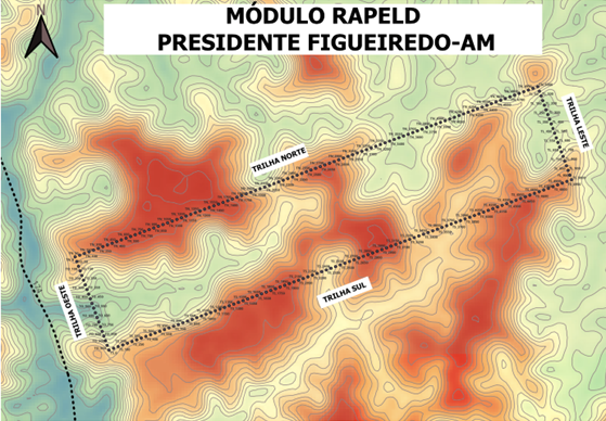Nesse contexto, em 2022 foi instalado um módulo RAPELD com cinco parcelas de amostragem durante um curso de campo do Programa de Pós-Graduação em Ecologia do INPA, quando foram realizadas amostragens pontuais de alguns grupos taxonômicos. Após esse período, as parcelas deixaram de ser utilizadas até 2025, quando o módulo foi revitalizado com o apoio financeiro do CNPq e FAPEAM através dos projetos CENBAM (Chamada INCT – CNPq no 58/2022, processo n°: 406474/2022-2), IARAA (EDITAL N. 007/2025 - PAPB-CT&I/FAPEAM, processo n°: 01.02.016301.02571/2025-89) e CAPACREAM (Chamada CNPq/MCTI/FNDCT Nº 19/2024, processo n°: 444350/2024-1), passando a contar com dez parcelas uniformemente distribuídas.