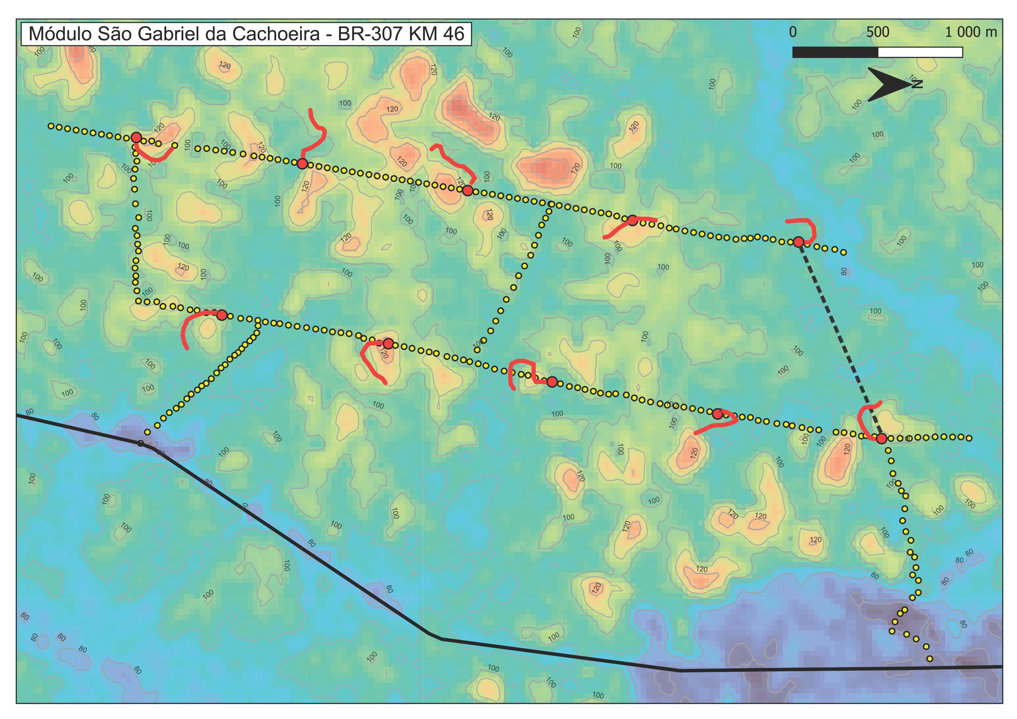 Durante a visita, foram definidos a disposição espacial dos módulos e os pontos mais propícios para a instalação da infraestrutura necessária como acampamentos, trilhas de acesso, captação de água e localização ao longo da estrada.